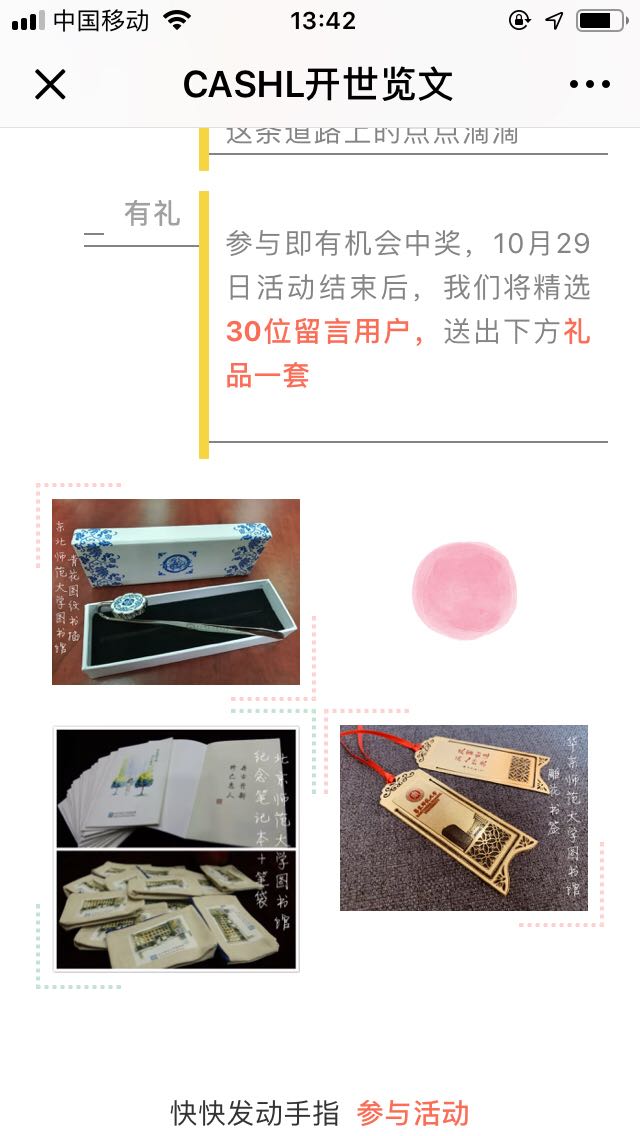 此次活动中,三家图书馆都提供了各馆特色文创用品,以提高用户活动参与度和扩大图书馆文化宣传。 鉴于此次是教育学科文献资源优惠活动,将宣传主要定位在“CASHL师范圈”,活动前期,三校共同努力建立了CASHL师范成员馆交流群,分工合作制作了海报、微信等宣传材料,并分享给师范成员馆,以便成员馆宣传。活动期间上海师范大学、湖南师范大学图书馆等都将此次活动推送给了本校读者。我们也通过CASHL主页、CASHL双微、三家联办馆官微等渠道也做了相关推送,反响良好,当天就有众多读者在CASHL后台留言推荐。