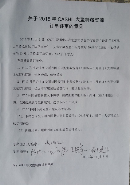 附件2:关于2015年CASHL大型特藏资源订单评审的意见