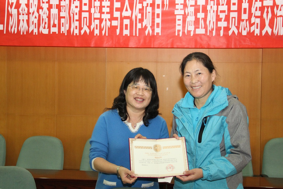 肖珑副主任为普布卓玛颁发结业证书 肖珑副主任为马安妮颁发结业证书