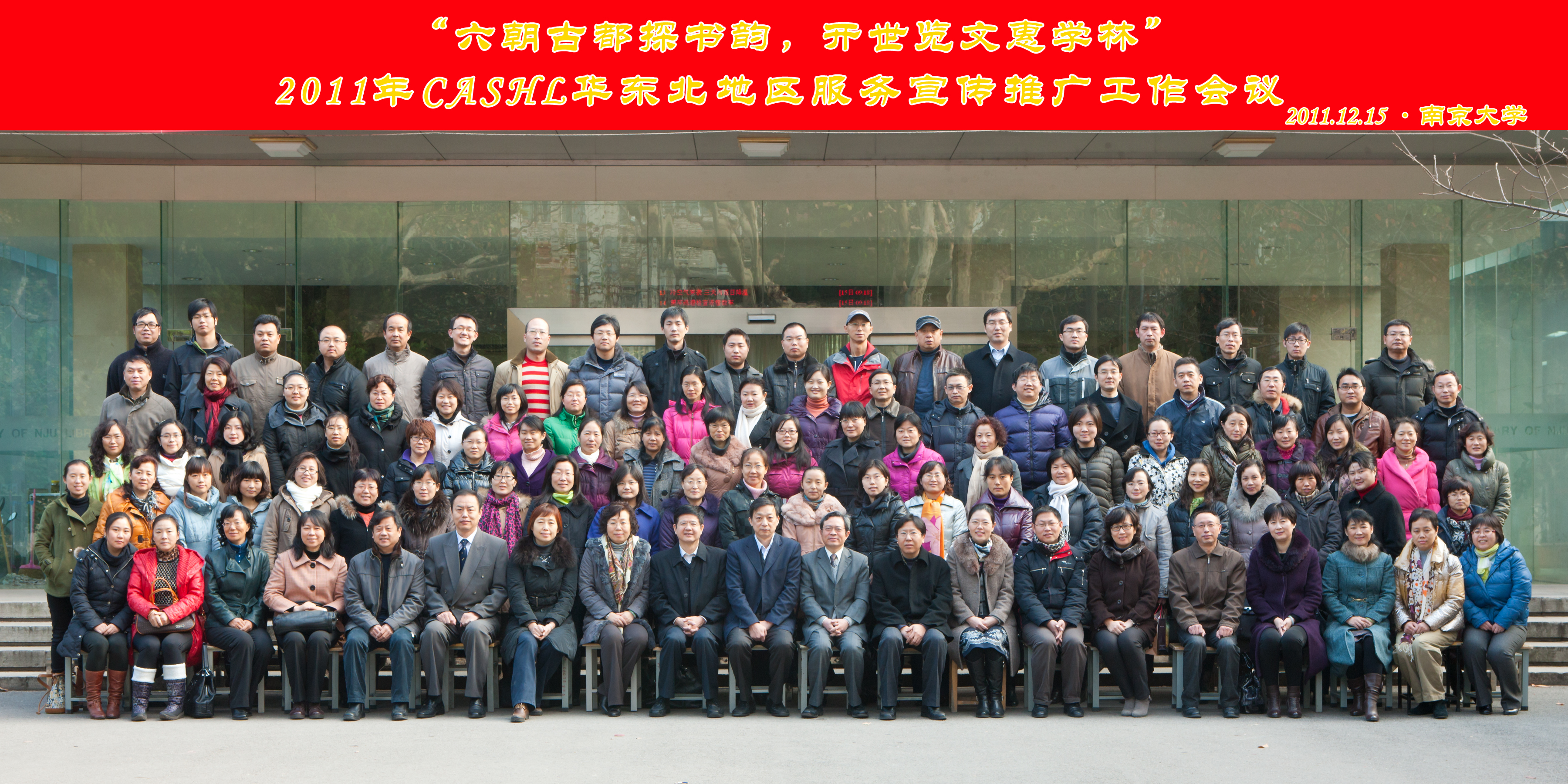 12月15日,由中国高校人文社会科学文献中心(China Academic Social Sciences and Humanities Library 简称CASHL)管理中心、CASHL华东北地区中心主办,南京大学图书馆承办的“六朝古都探书韵,开世览文惠学林——2011年CASHL华东北地区服务宣传推广工作会议”在南大图书馆召开。教育部社科司何健处长、南京大学副校长杨忠教授,南京大学社科处处长王月清教授、南京大学图书馆馆长洪修平教授、CASHL管理中心关志英秘书长等领导以及来自山东、安徽和江苏省各高校图书馆,南京图书馆、金陵图书馆、省社科院图书馆71个 单位的近150位代表参加了本次会议,成为CASHL各区域宣传推广活动中参加单位、参会人数最多的一次会议。